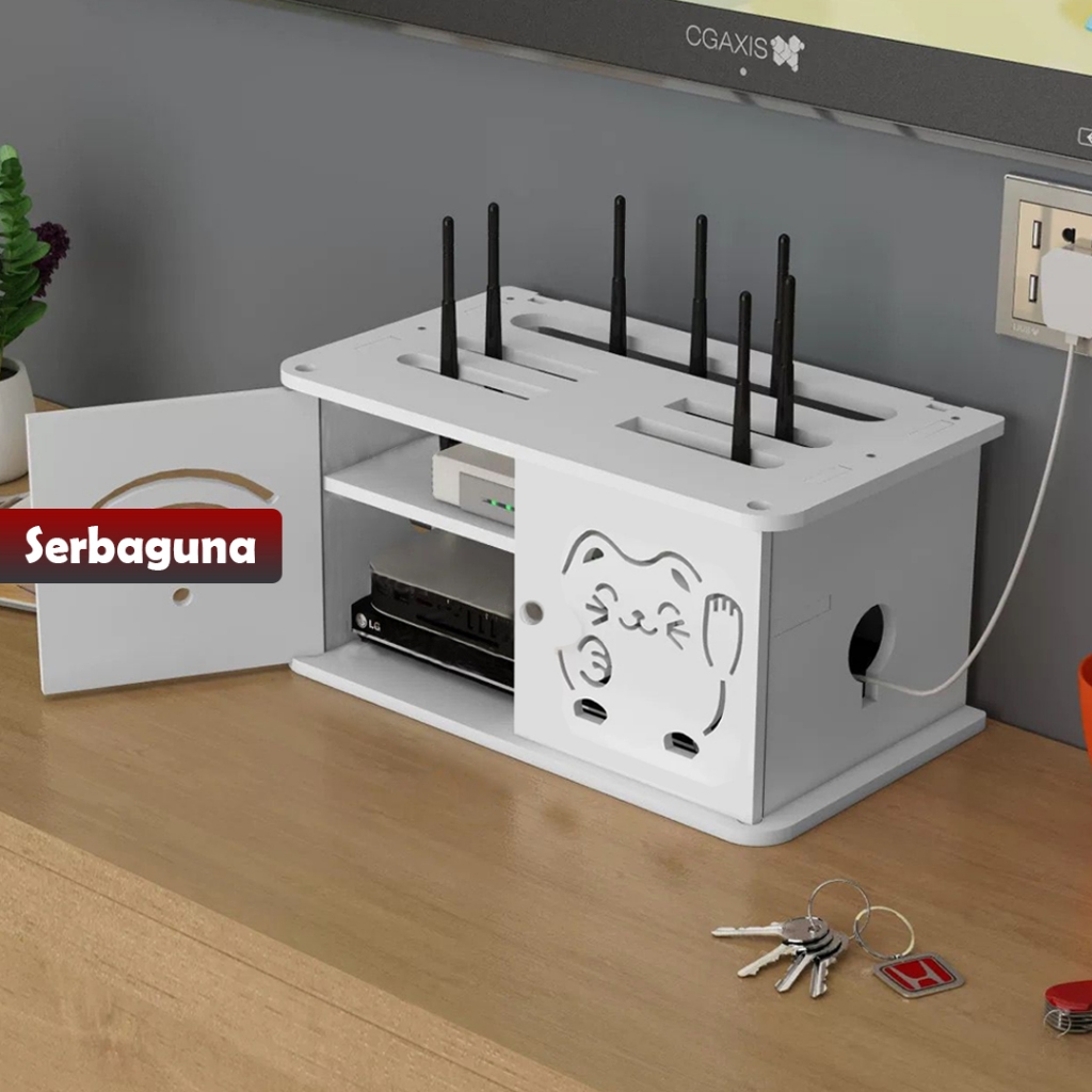 YOSINOGAWA - KOTAK PENYIMPANAN ROUTER WIFI SUDUT MALAS RAK KOTAK SET-TOP