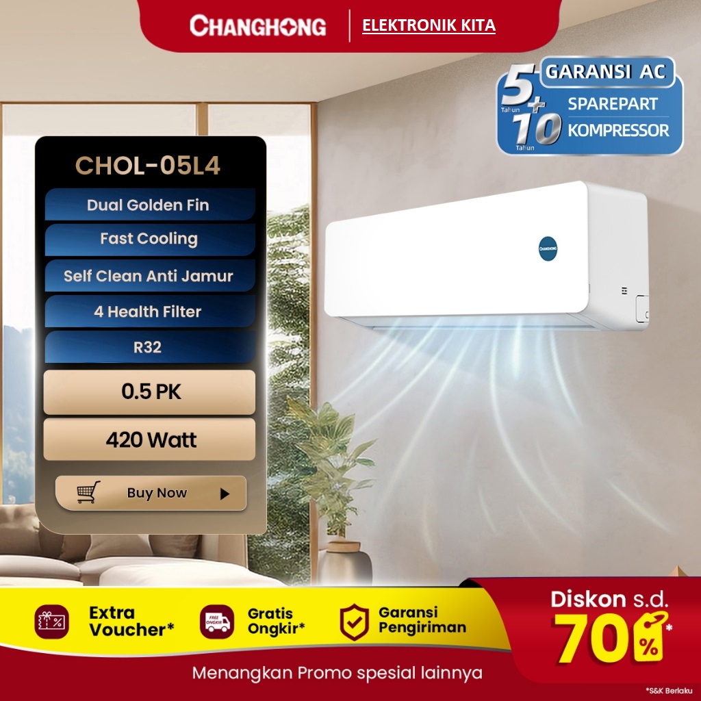 CHANGHONG AC 1/2 PK STANDARD CHOL-05L4 [INDOOR + OUTDOOR UNIT ONLY] [FAST COOLING] [SLEEP MODE] [ECO MODE]]