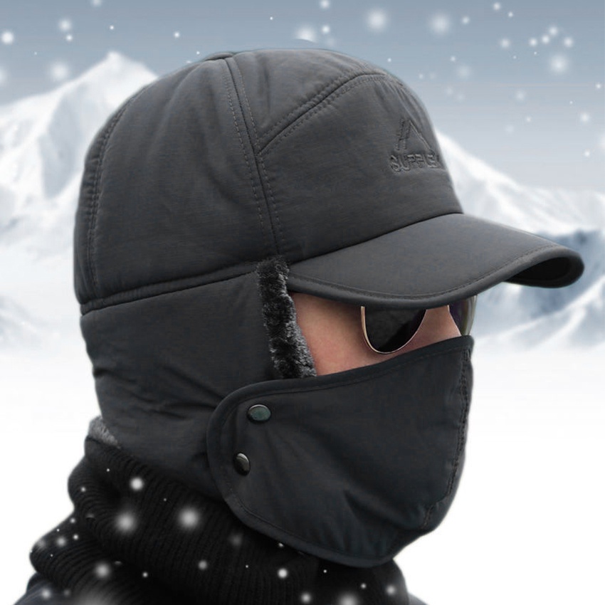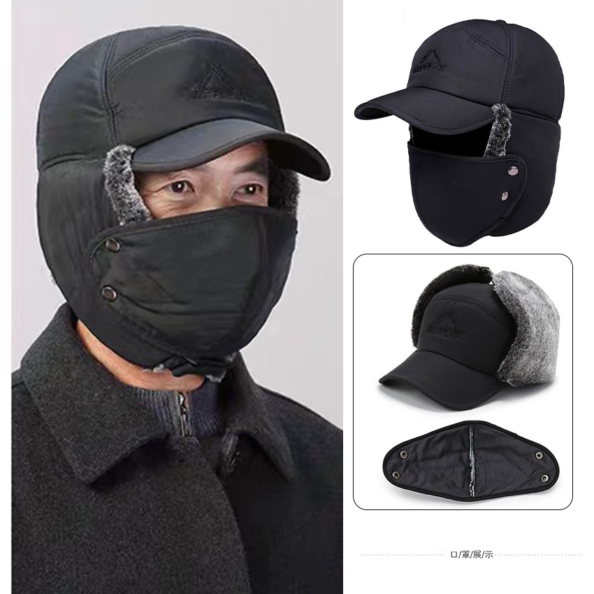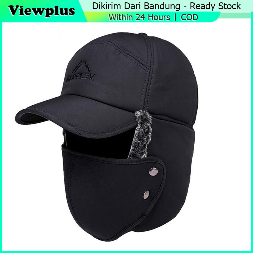 3in1 Topi Ushanka Russian Topi Bomber Cap dan Masker Water Resist Winter Bomber Hat Topi Musim Dingin