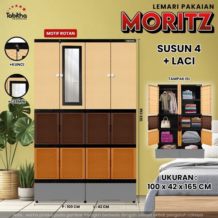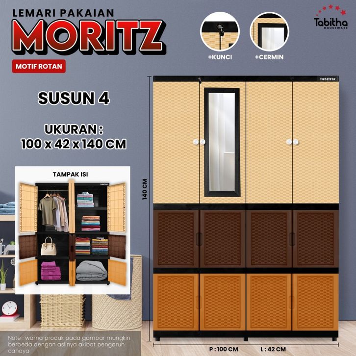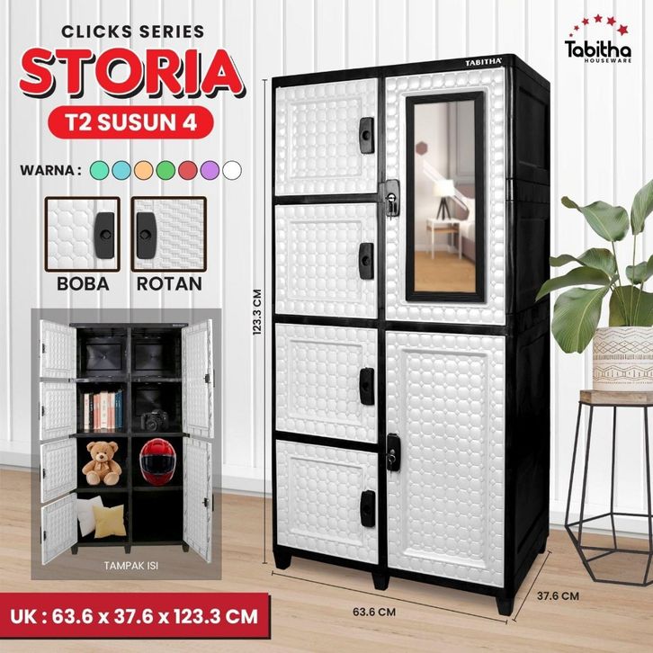 Lemari Pakaian Plastik Tabitha Storia Lemari Pakaian Kunci Kaca Putih 4 Susun