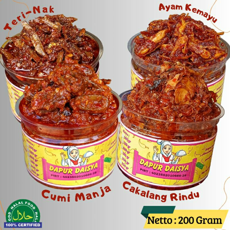 PECEL (200 Gr), CUMI-MANJA (200 Gr), SUWIR AYAM (200 Gr), CAKALANG (200 Gr), TERI-NAK (200 Gr)