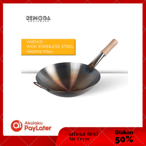 Kuali Wajan Penggorengan Sudah Seasoning Anti Lengket 30-40cm Stainless Steel Calypso Wok