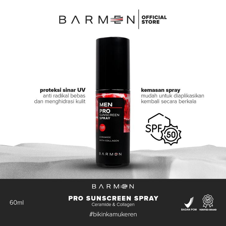 BARMEN PRO Sunscreen Spray Ceramide With Collagen 50 ml 2 Pcs - SPF 50 / Anti UV untuk Wajah Pria