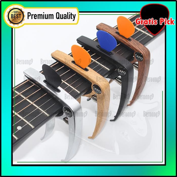 Capo Gitar Dengan Holder Pick Kapo Gitar Capo Guitar Premium Penjepit Gitar