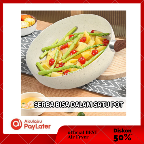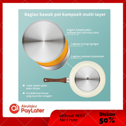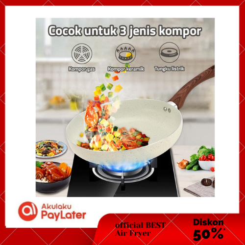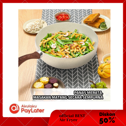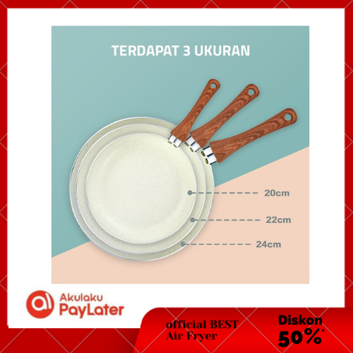 Wajan Penggorengan Marble Coating 20cm (Beige) 1812 Fry Pan Marble GM Bear