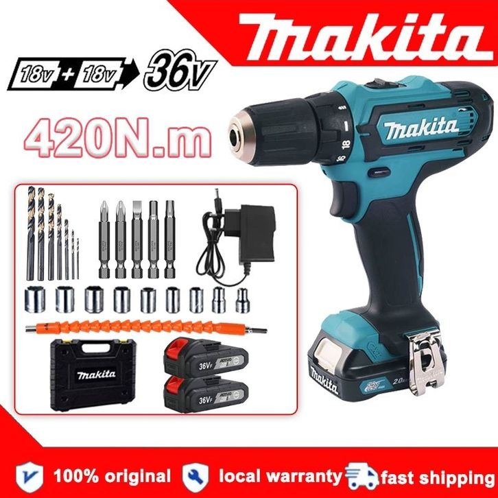 [Star] ( FLASH SALE ) Mesin Bor Baterai Makita 36V Cordless Drill Brushless Drill Screwdriver Impact Drill 2 Batteries