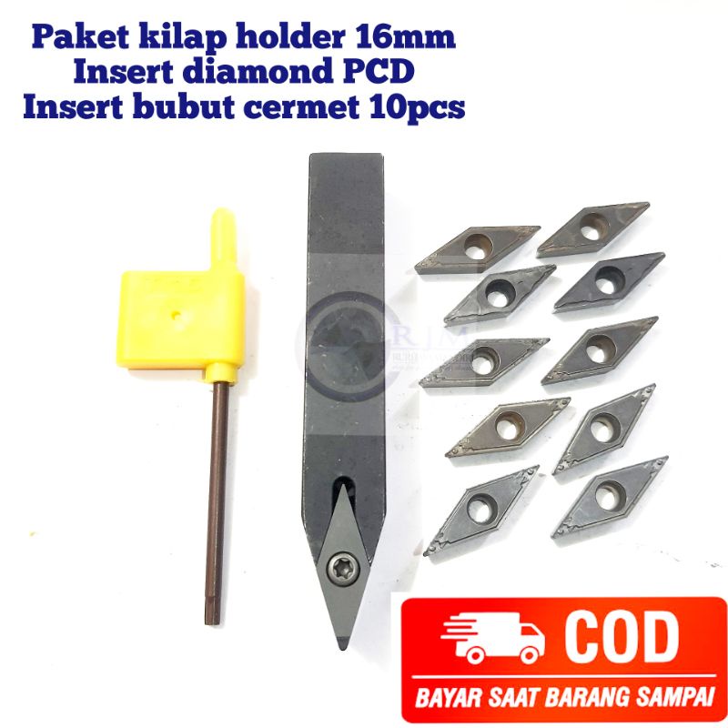 PAKET PAHAT BUBUT HOLDER 16MM FOR ALUMUNIUM KINCLONG KILAP SVVBN 1616K16 SET DIAM0ND PCD SET INSERT CERMET