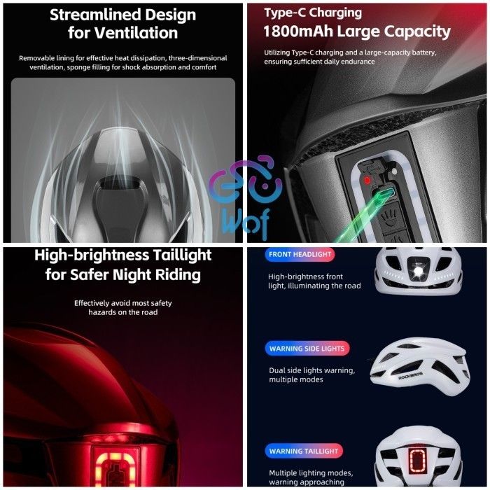 ROCKBROS ZK-077 Helm Sepeda MYB Road Bike plus Lampu 10110035 Bicycle Light Helmet Type-C Charging Cycling Helmet Rech