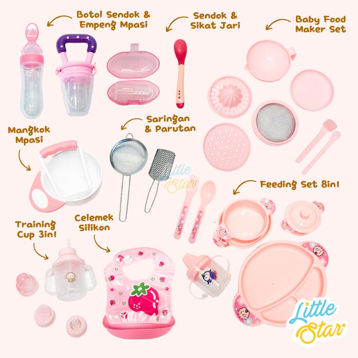 LS 26in1 Feeding Set Paket Lengkap Alat Makan Perlengkapan Mpasi Newborn Baby Food Maker Penghalus Penghancur Makanan B