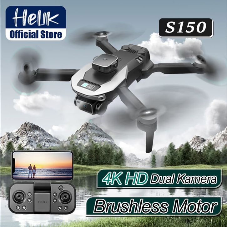 HELIK S150 DRONE DENGAN HD DUAL CAMERA MINI DRONE WIFI FPV ANTI TABRAKAN DAPAT DILIPAT BRUSHLESS MOTOR