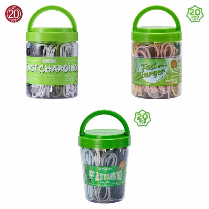 HWARTZ Kabel Data ROBOT Harga per Toples isi 20pcs ORIGINAL RBM100S MICRO USB / RBC100S TYPE-C Fast Charging 2.4A