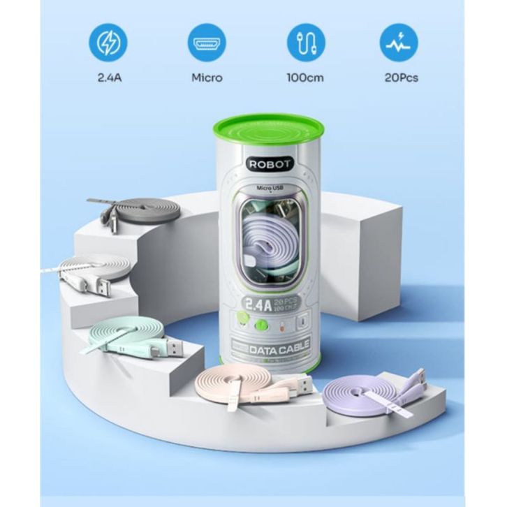 1 KALENG 20 pcs kabel data robot RAM100S 2.4A micro RAC100S type c 2.4A RAL100S lightning 2.4A fast charger