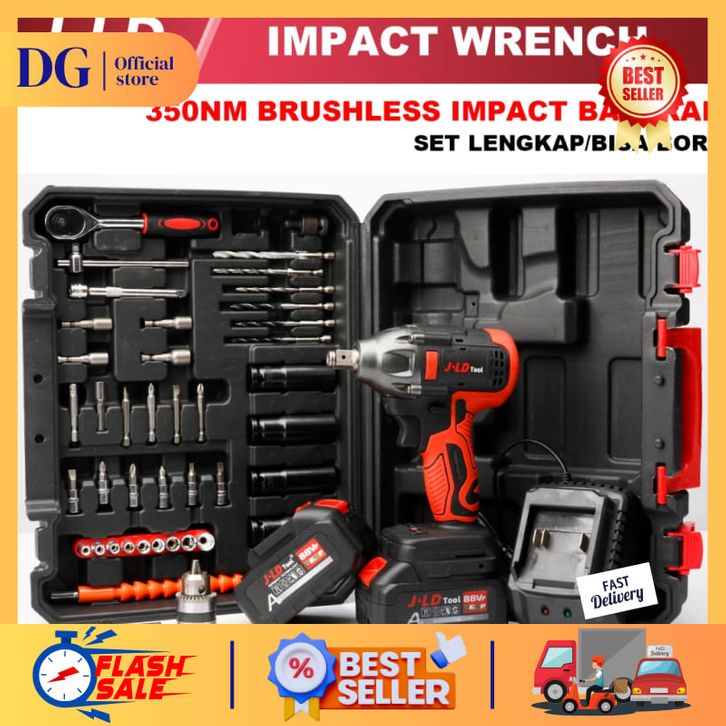 JLD Mesin Bor Impact Baterai 88VF Fullset Impact Bor 2Baterai 350NM Impact Wrench Impact JLD Set