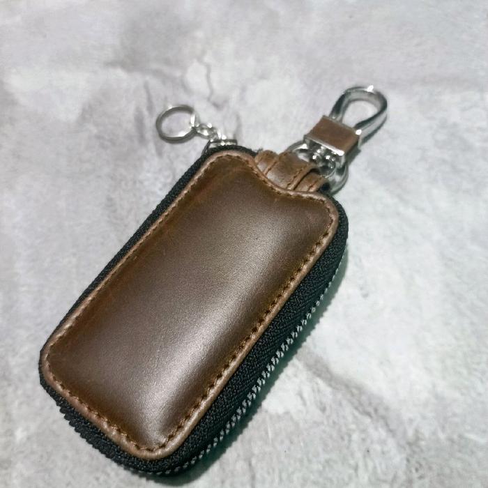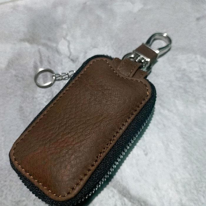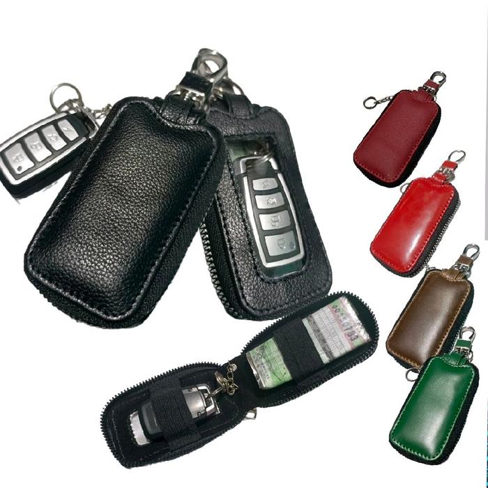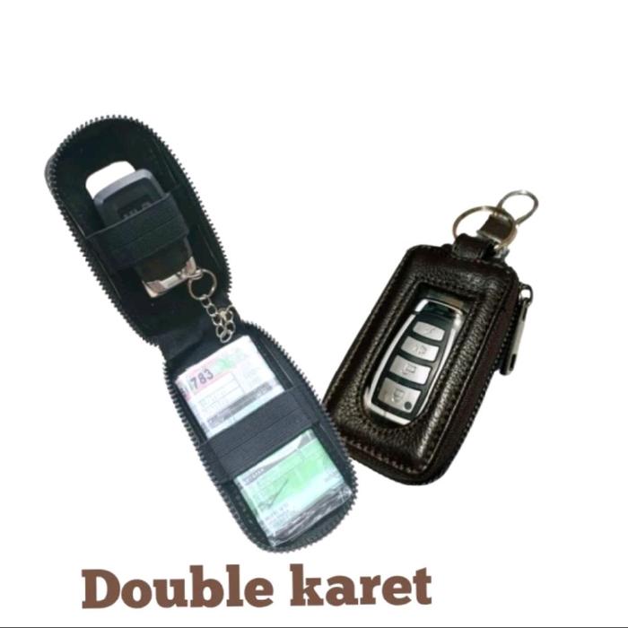 dompet kunci remote keyless mobil kulit asli universal model polos dobel karet