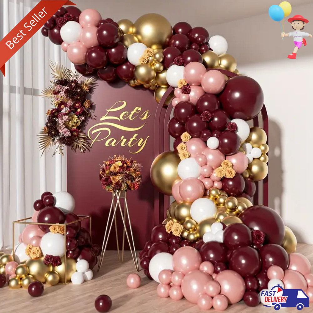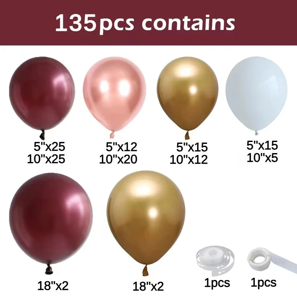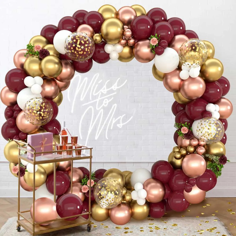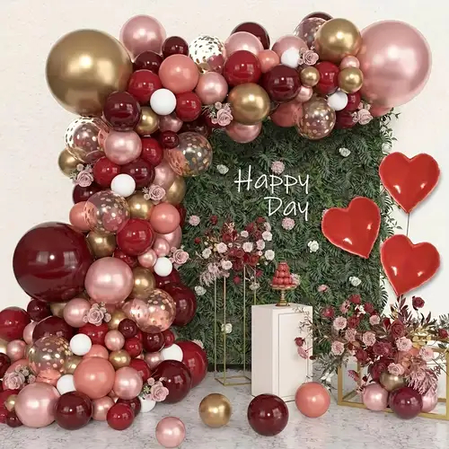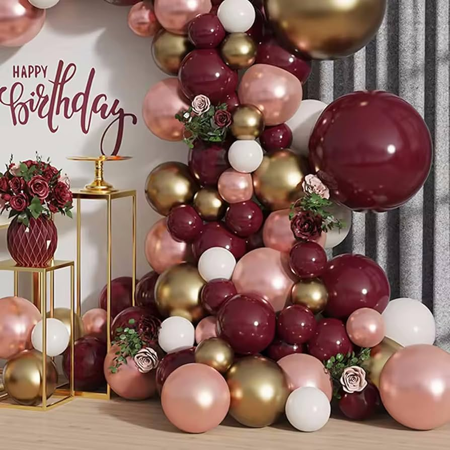 Set Balon Ulang Tahun Merah Antik Balon Lateks Lengkungan Rantai Karangan Bunga Dekorasi Pertunjukan Bayi Pernikahan Pes