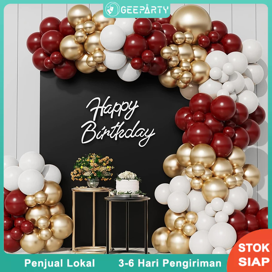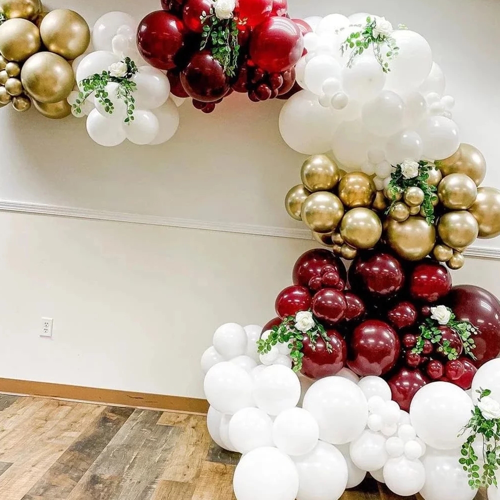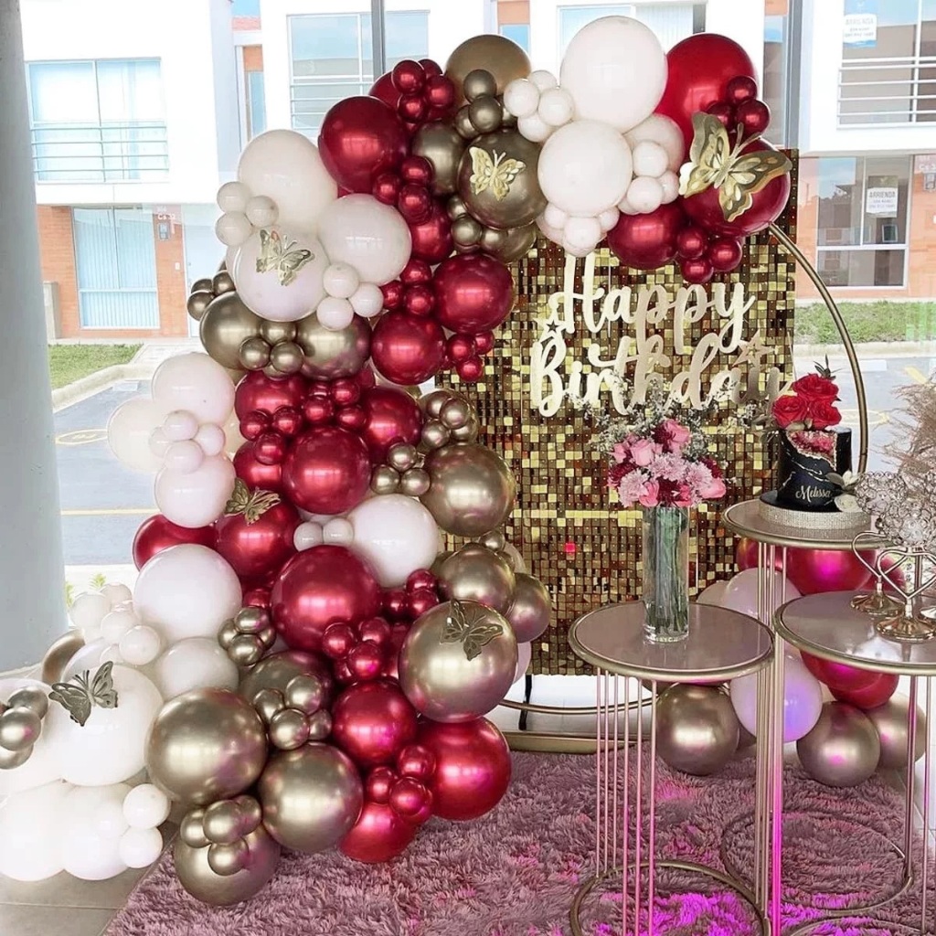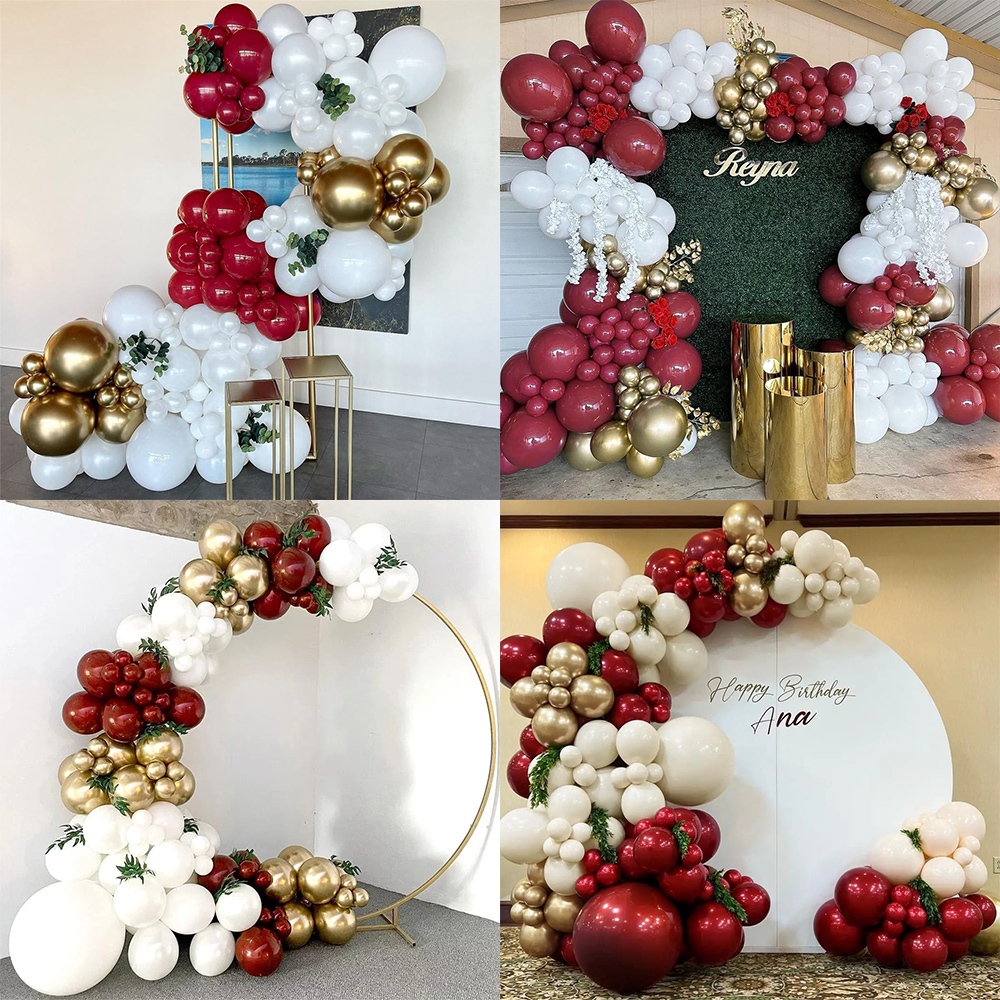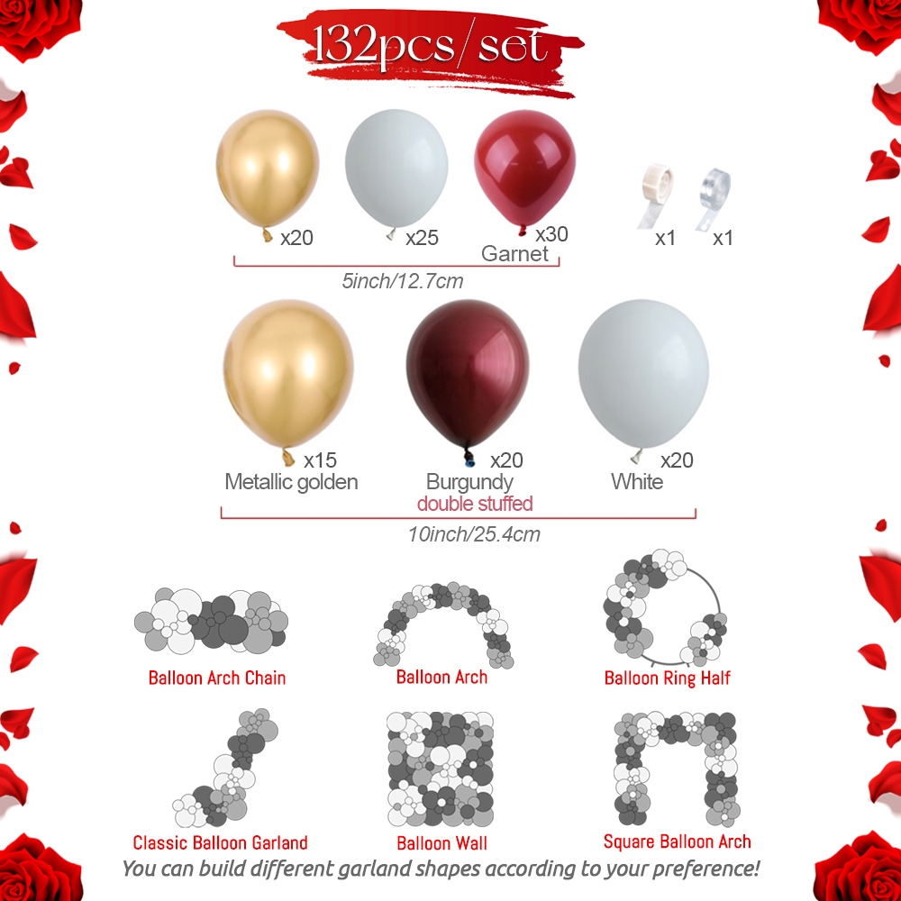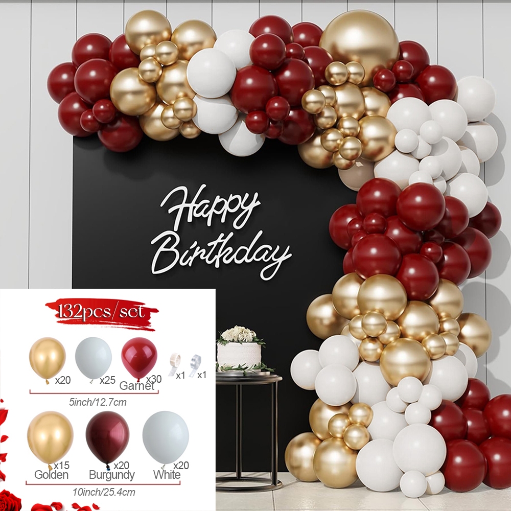 132 Pcs Ruby Merah Emas Kit Lengkungan Balon Lateks untuk Dekorasi Pernikahan Pesta Ulang Tahun