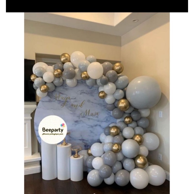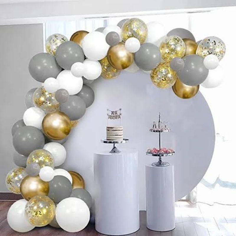 Paket Balon Abu2 Gold Lengkap 12inch 5inch