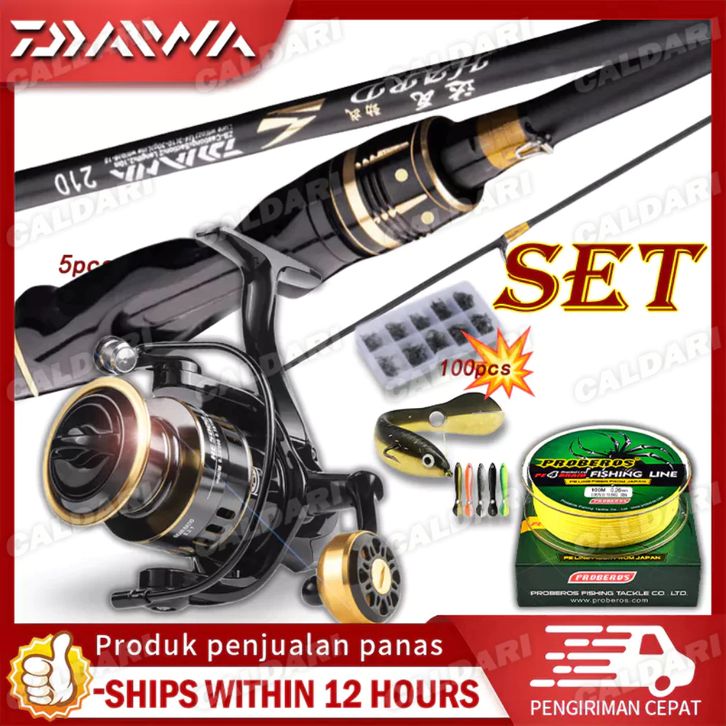 【5 Buah Set】Set Joran Pancing Lengkap DAIWA Reel Pancing Set Portable Fishing Rod Reel Set 2 Section 12+1BB 5.2:1 High