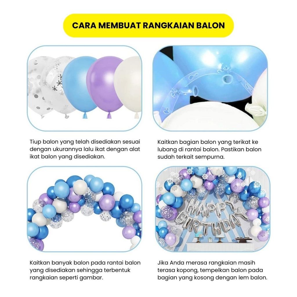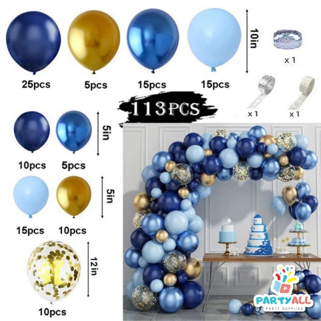 [PAKET DEKORASI] Dekorasi Rangkaian Balon Tema Biru Emas Premium / Balloon Garland Pesta - PartyAll