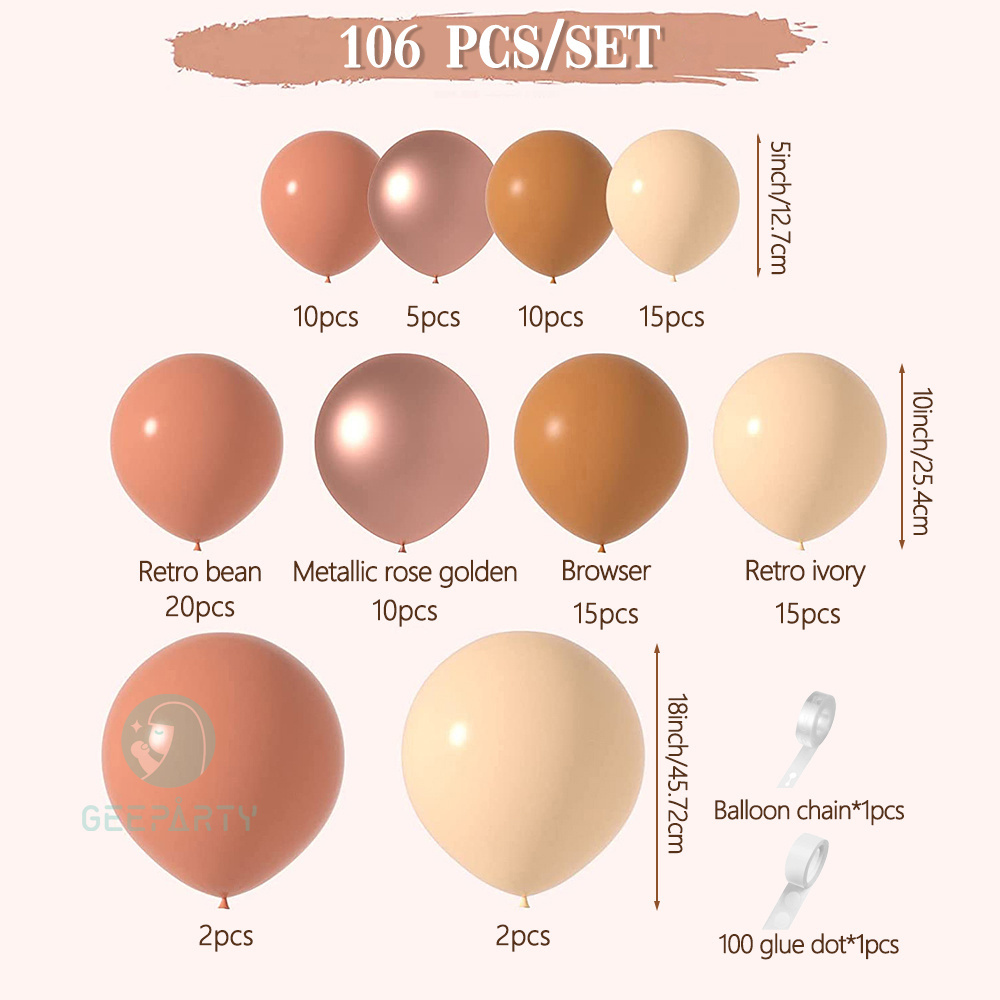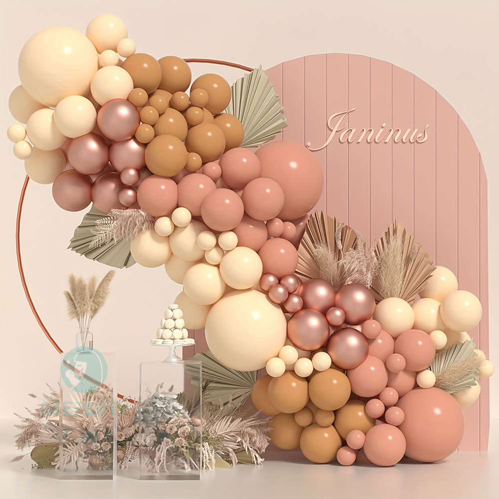 106 Pcs Merah Muda Retro Garland Balon Coklat Emas Mawar untuk Dekorasi Pernikahan Pesta Ulang Tahun