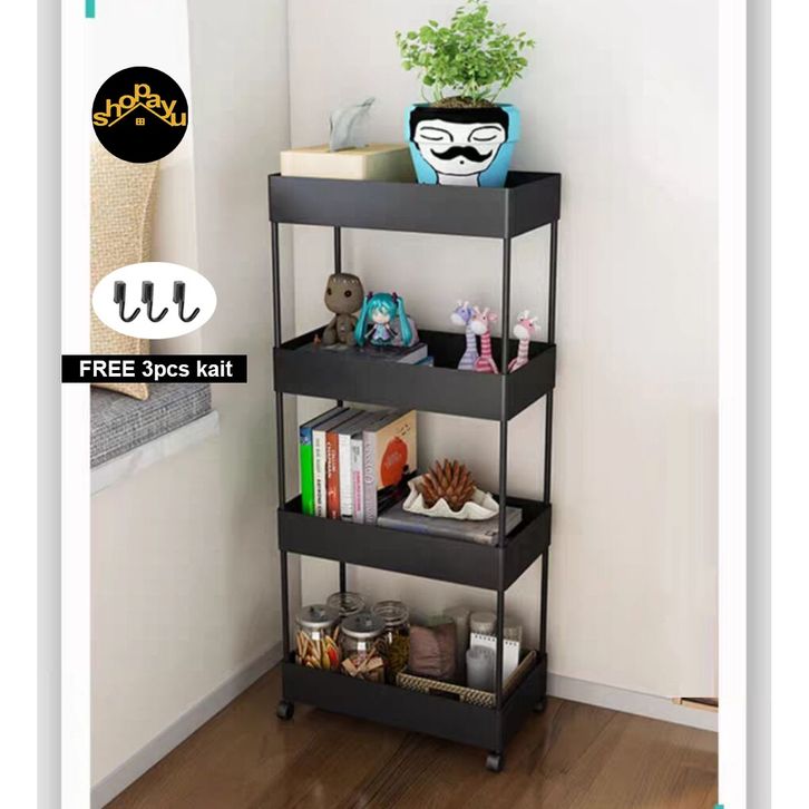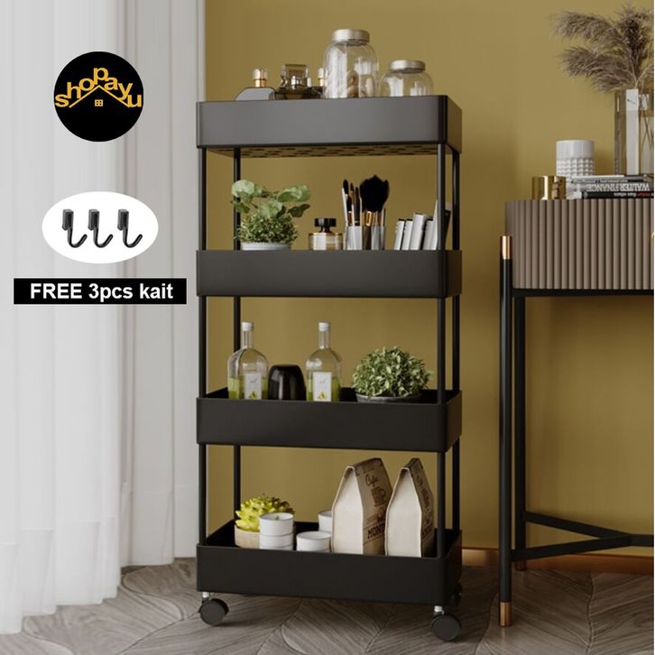 Rak troli Persegi / Sudut / 4 susun / plastik rak toilet rak kamar mandi rak dapur serbaguna rak susun portable roda
