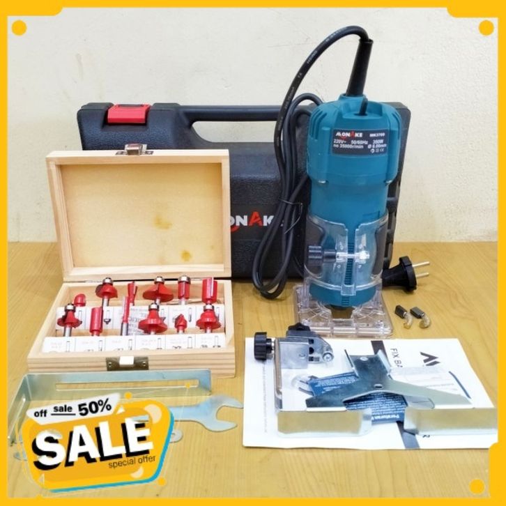 PROMO Paket Mesin Trimmer Propil Kayu MONAKE MK3709 + Bonus Mata Profil Router Bit SET 12pcs Double Thunders/ Lumos