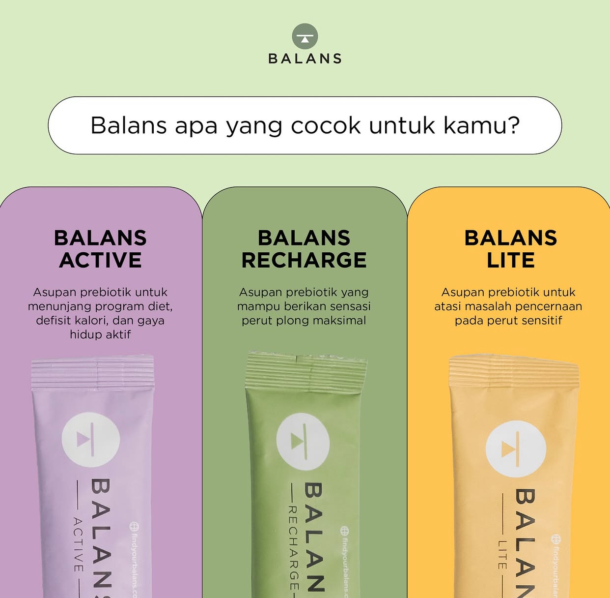 1 Sachet BALANS RECHARGE / LITE/ ACTIVE Fiber Drink Tinggi Serat Probiotik Diet Detox Pelangsing Slimming