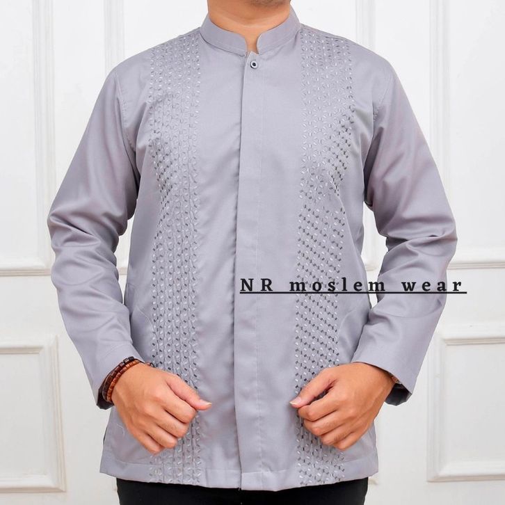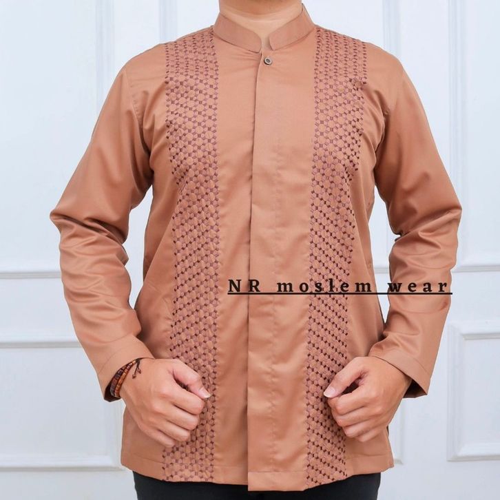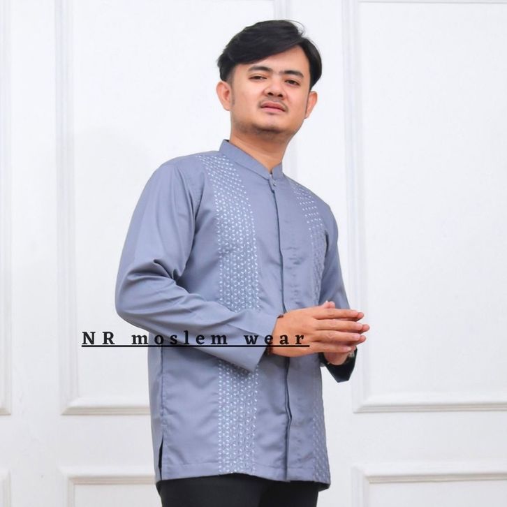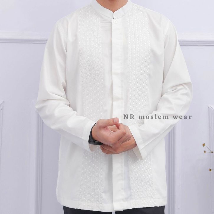Baju Koko Warna Lengan Panjang Borderan Premium Kode ARK-16