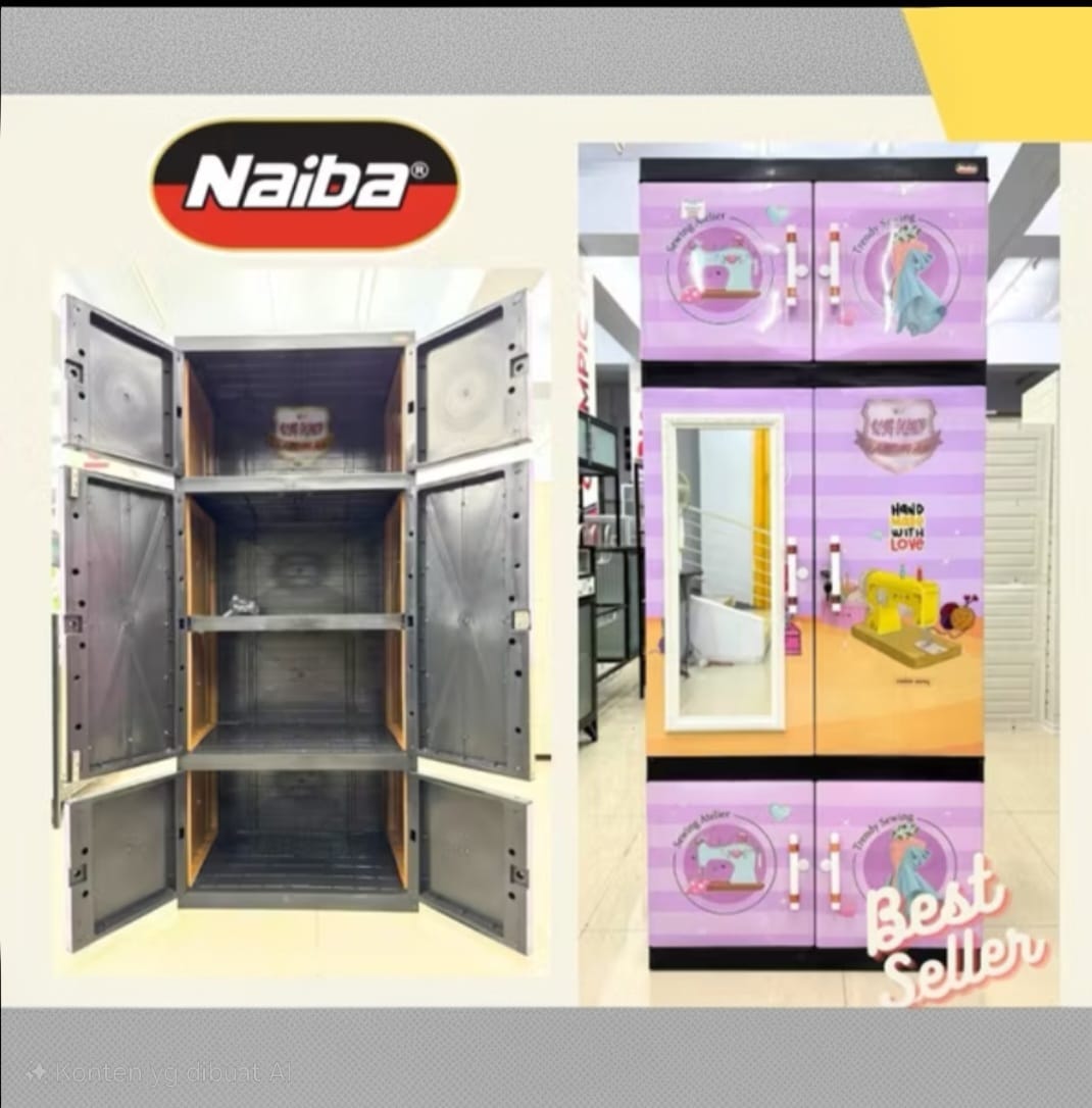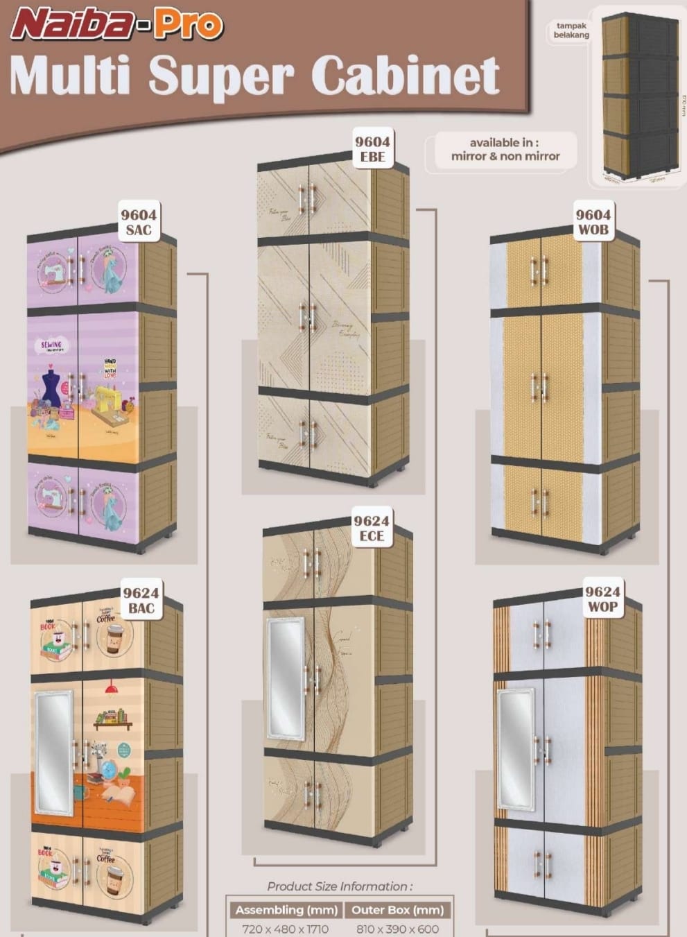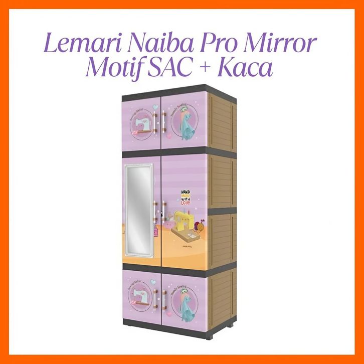lemari naiba pro miror motif SAC + KACA /lemari kabinet cermin jumbo lemari plastik pakaian