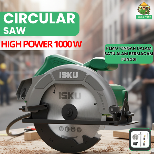 ISKU Circular Saw 7 Inch 1000W Mesin Gergaji Potong Kayu Listrik Heavy Duty High Power 185mm