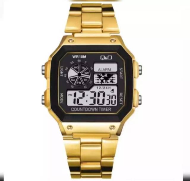 GRATIS ONGKIR JAM TANGAN PRIA KASUAL SPORT DIGITAL QQ SEGI STRAP RANTAI STEEL 4 WARNA