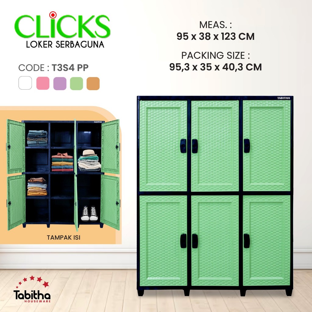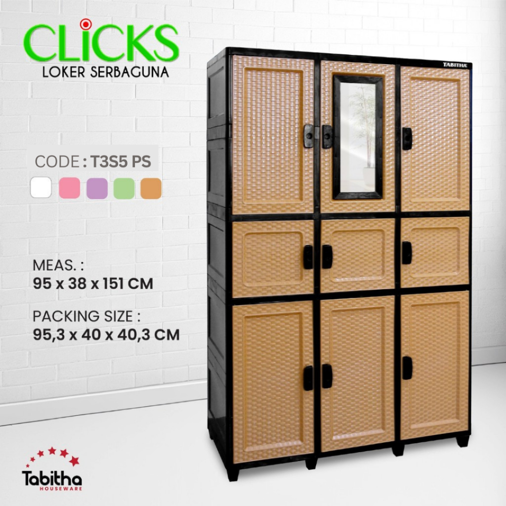 Lemari Plastik Serbaguna Lemari Pakaian Cermin Kunci Estetik - Tabitha Clicks T3 New