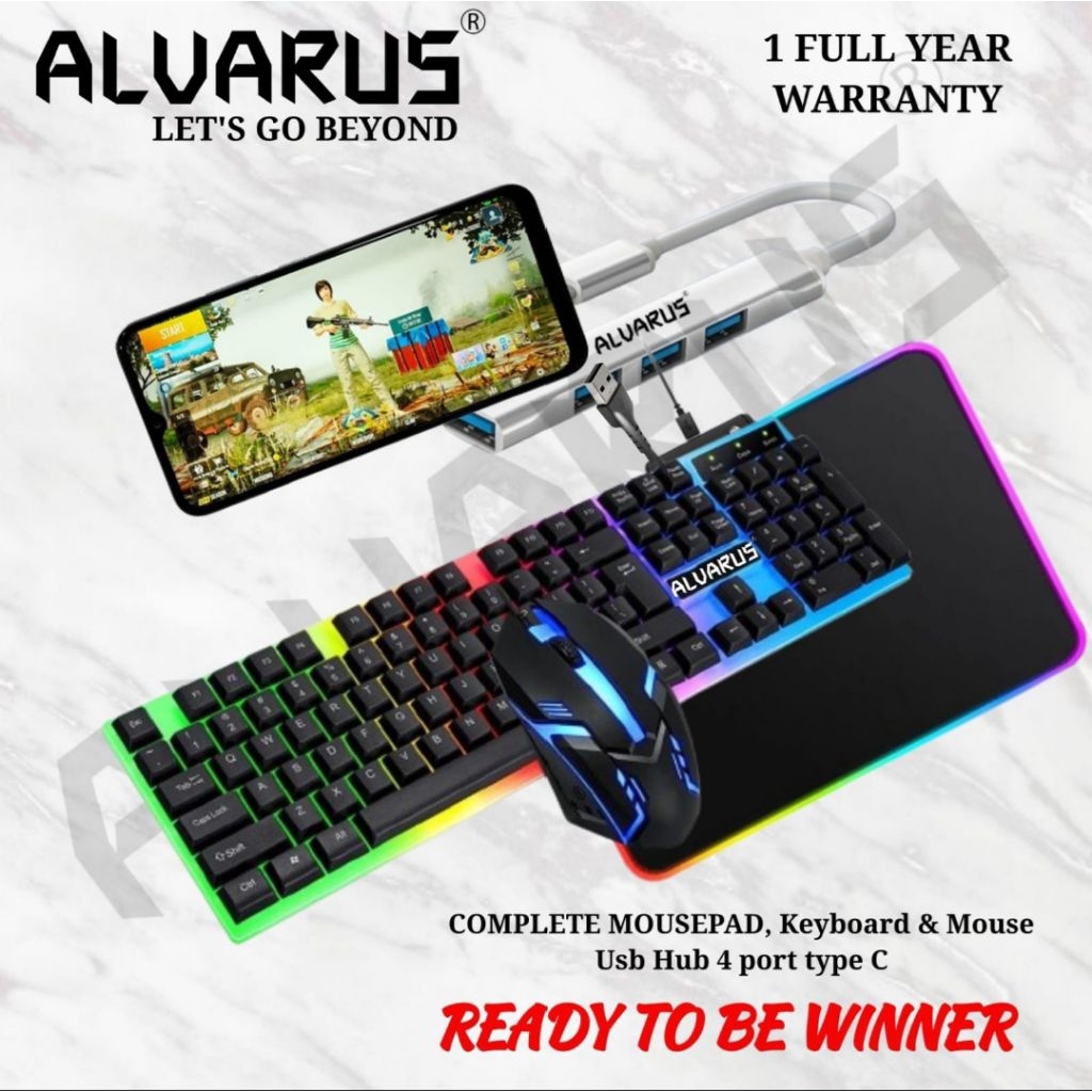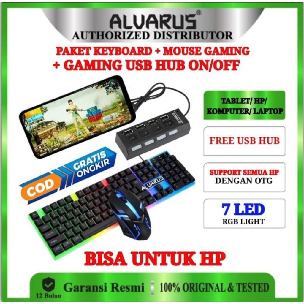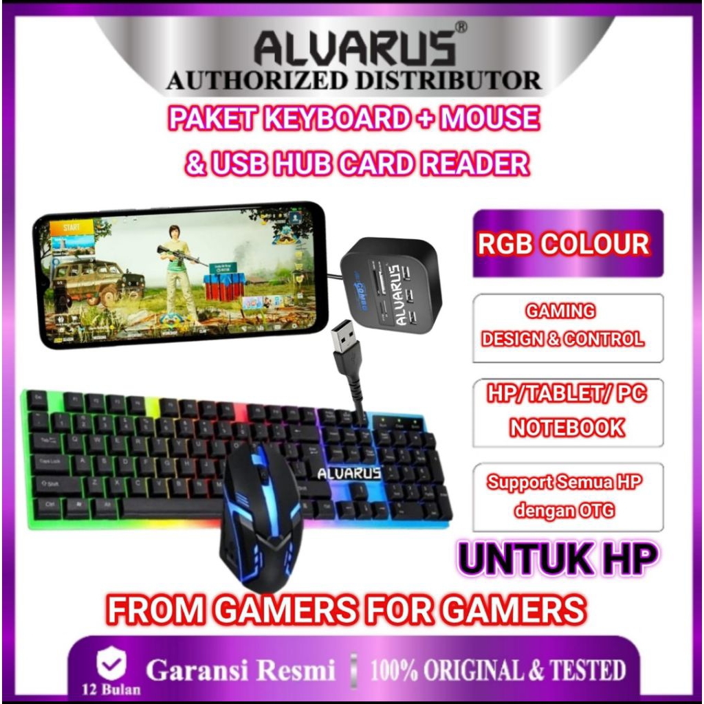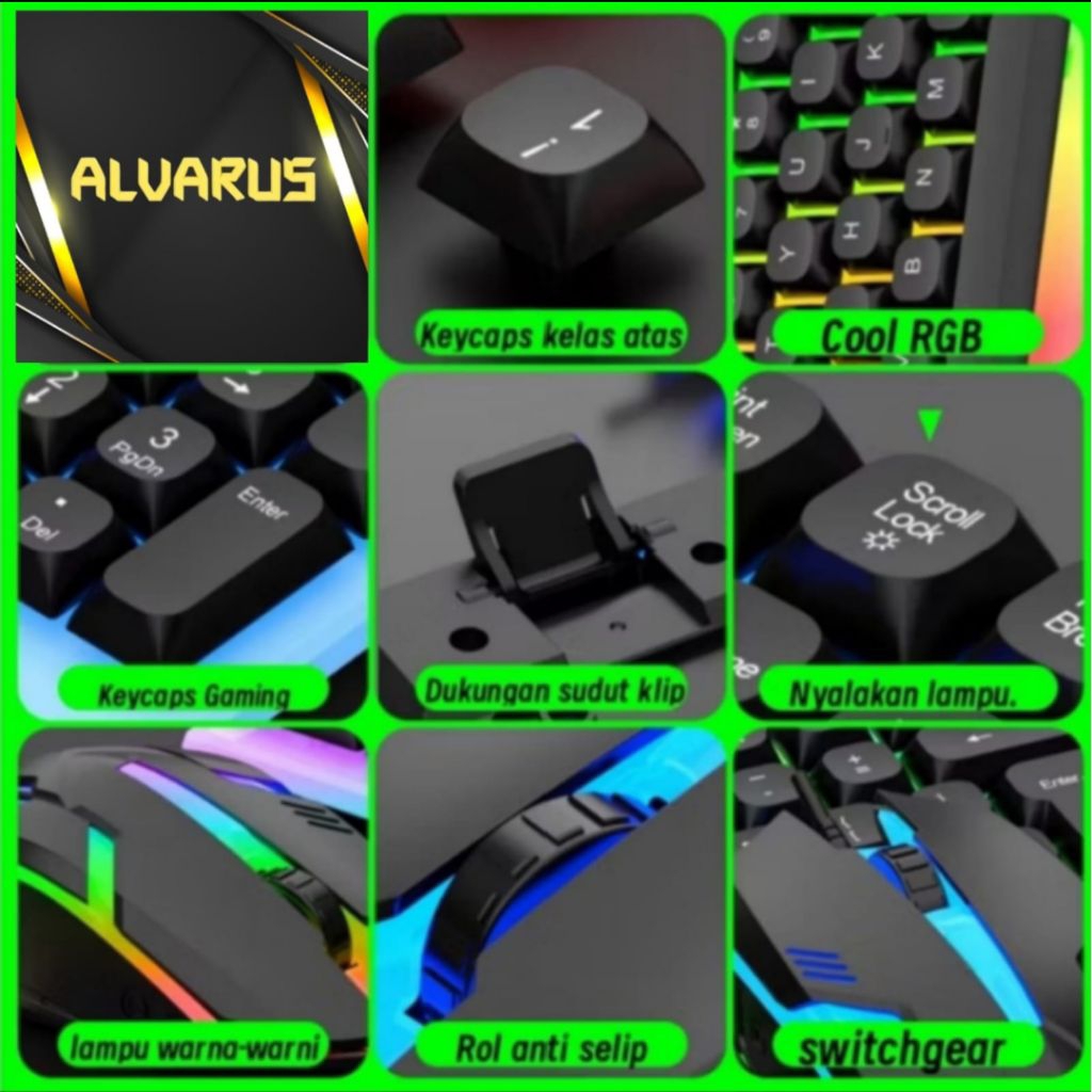 Paket Keyboard Gaming dan Mouse Laptop/ PC/ HP/Tablet/ Set Mouse Keyboard Gaming Kabel Led RGB ALVARUS BISA UNTUK HP