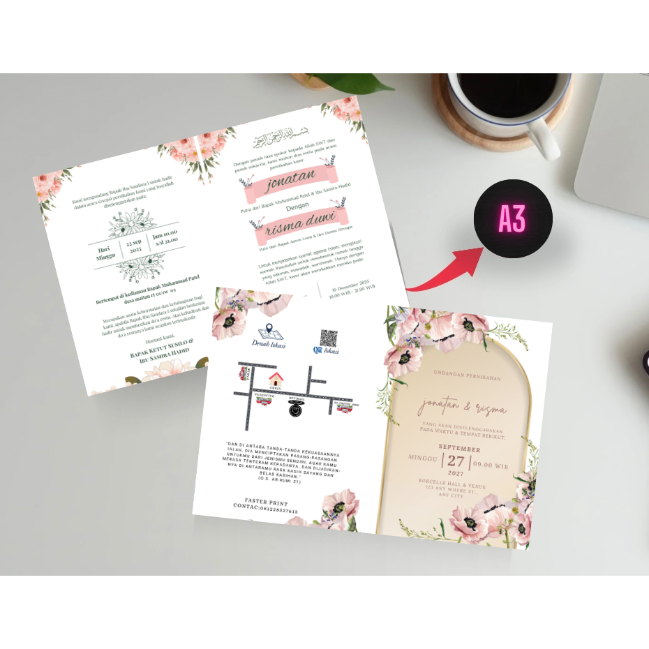 UNDANGAN PERNIKAHAN CUSTOM MEWAH FULL COLOUR GAMBAR BY FASTER PRINT