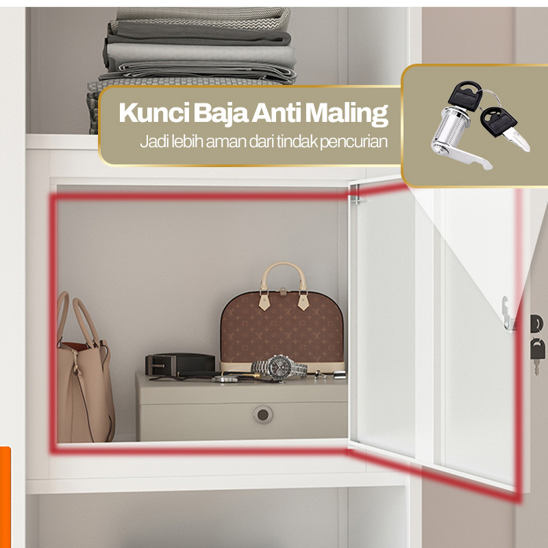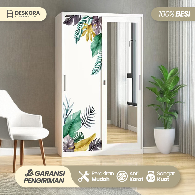 Lemari Besi Sliding 2 Pintu Untuk Pakaian Full Plat & Motif Lemari Baju Minimalis Garansi | Deskora
