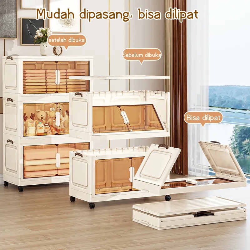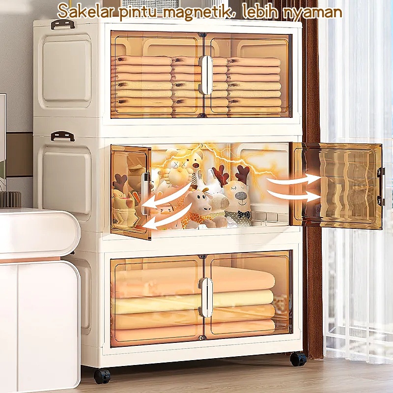 3/4/5 Tingkat Lemari Susun Transparan Lemari Plastik Lipat Penyimpanan Lemari Plastik Baju Anak Serbaa