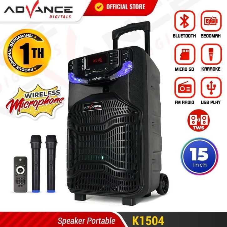 Speaker Bluetooth Keren Terbaru Full Bass Advance K1504 Sound System Salon Aktif Blutut Karoke Karaoke 15 Inch Polytrom