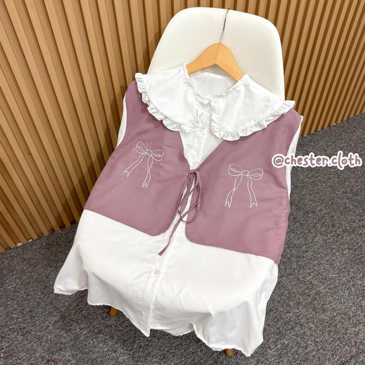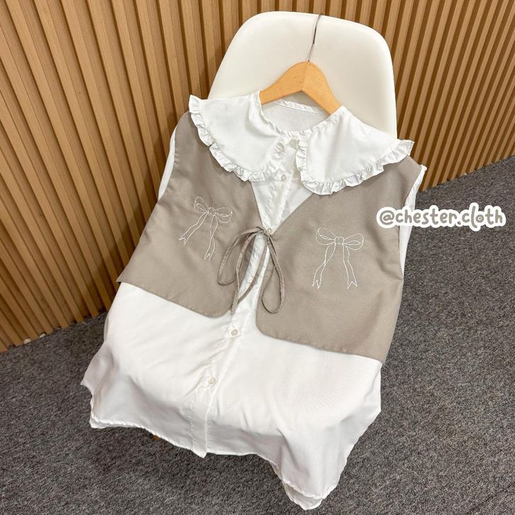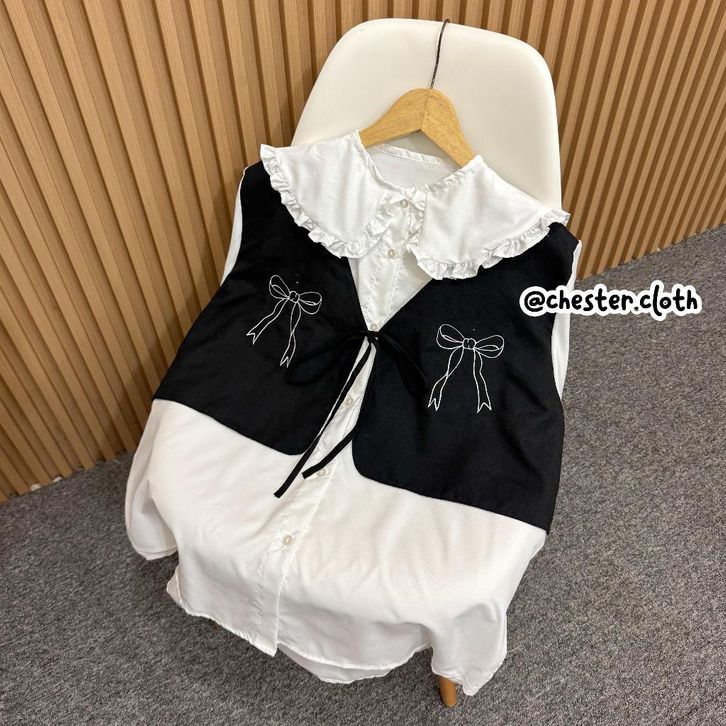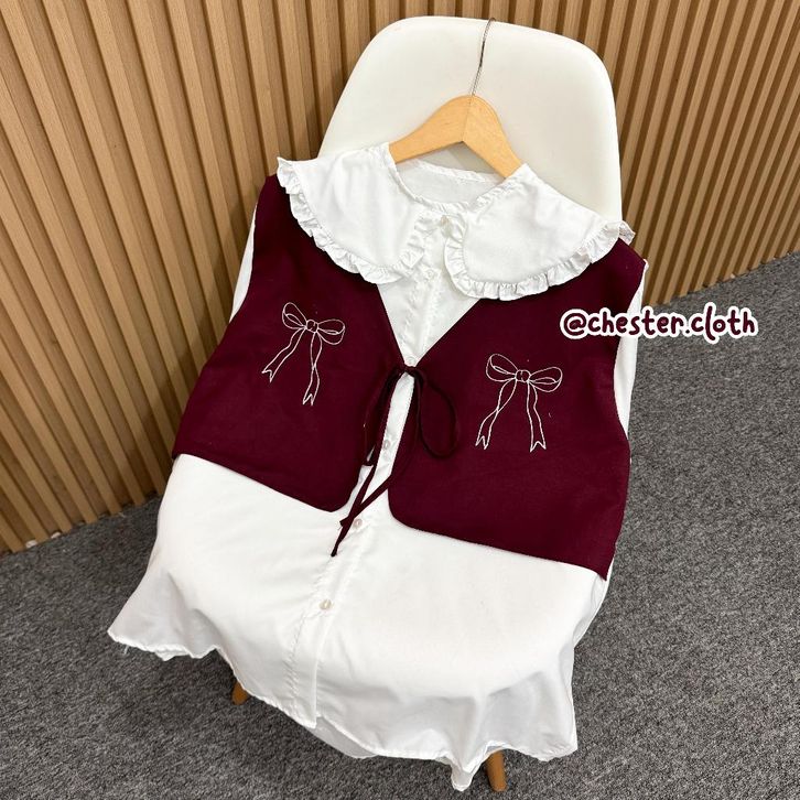 Devia Blouse Vest Pita Bordir | Atasan Wanita Coquette Sailor Ruffle Rompi Kombinasi