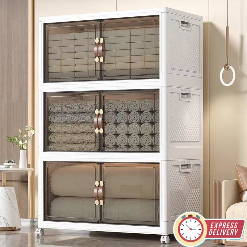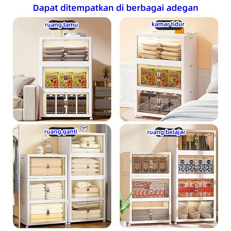 Panjang60CM▶triple kotak penyimpanan storage box susun lemari plastik Lemari Pakaian kotak plastik Lemari Baju Serbaa