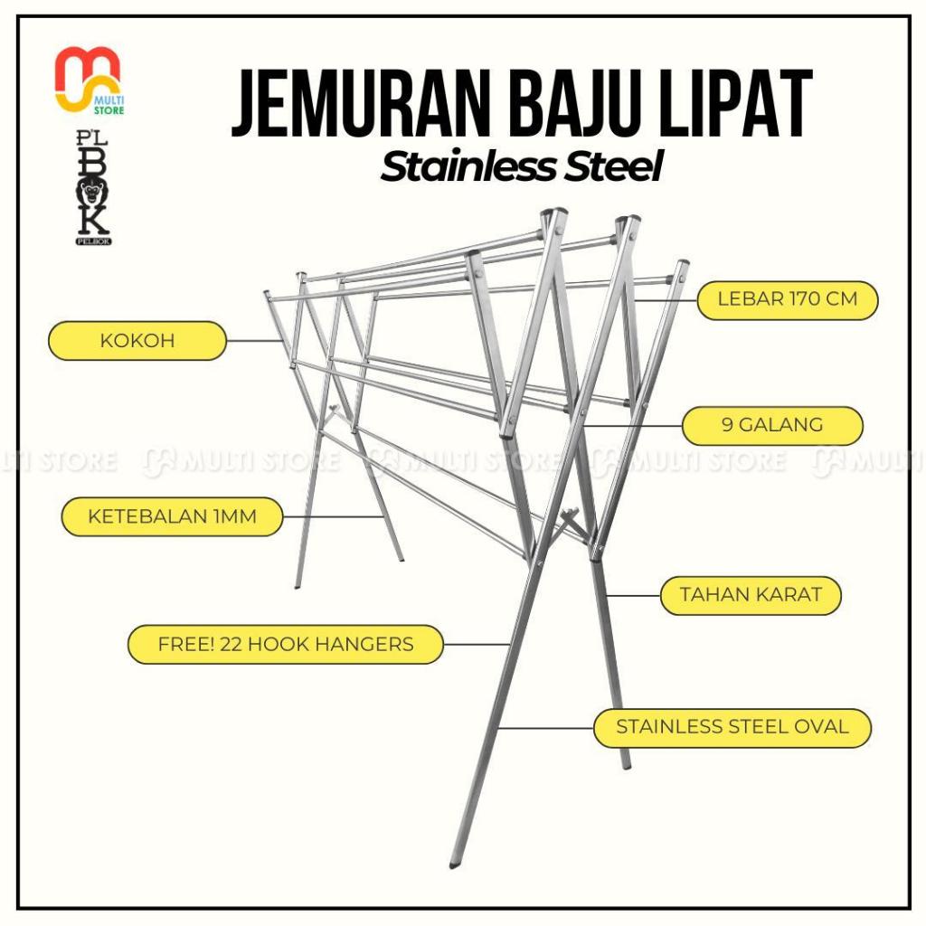 Jemuran Baju Berdiri Stainless PELBOK Standing Drying Rack 9 Galang