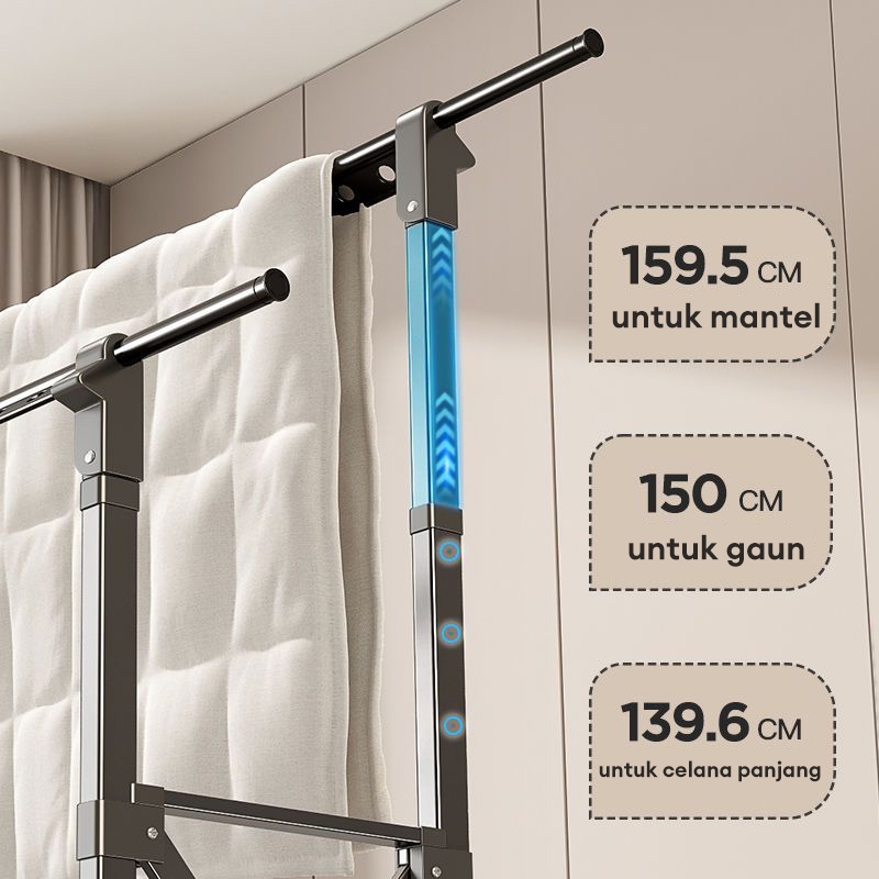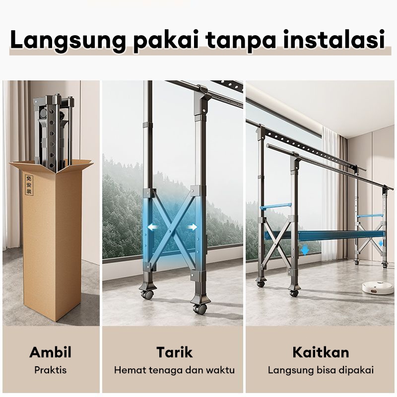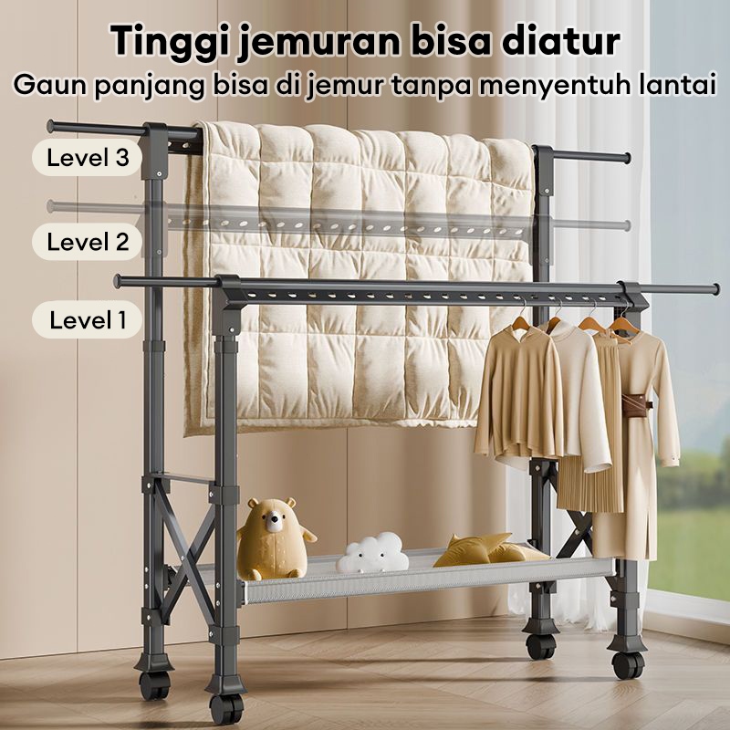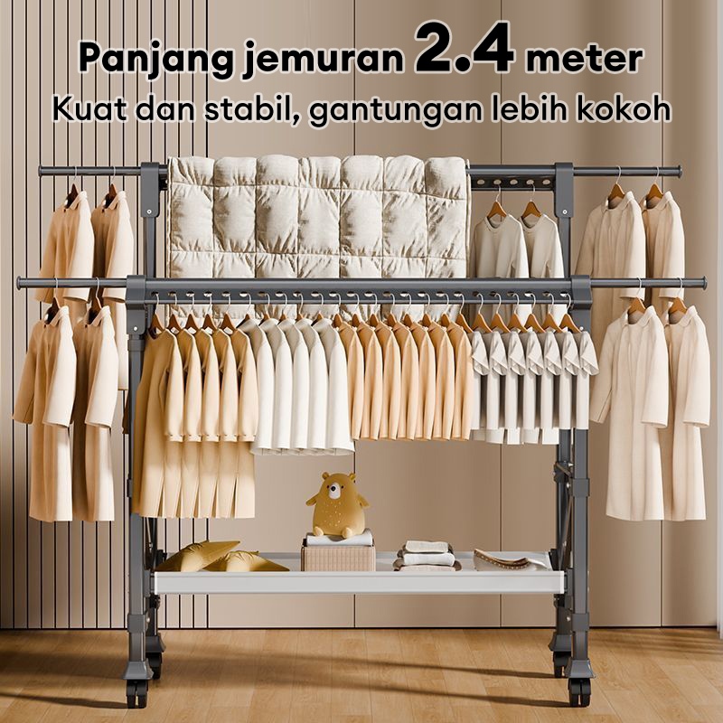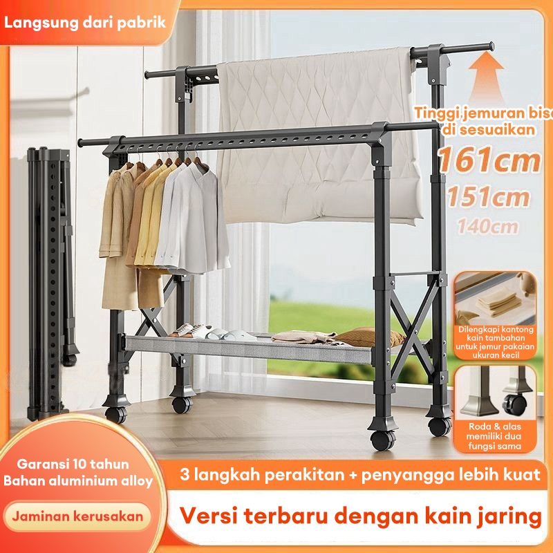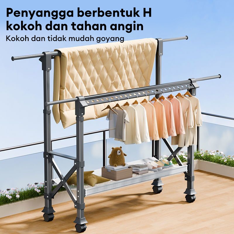 Jemuran Baju Lipat Aluminium Jemuran Baju Dengan roda Jemuran Baju Besi Kuat Besar