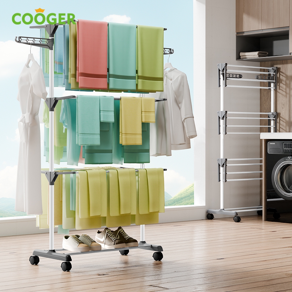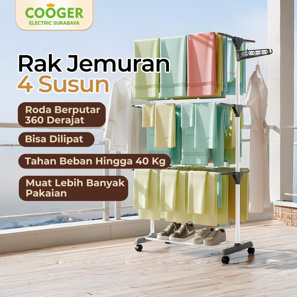 COOGER Jemuran Baju Handuk Pakaian Rak Jemuran 4 Tingkat Serbaa Anti Karat Bisa Dilipat Cocok untuk Apartemen Stainless