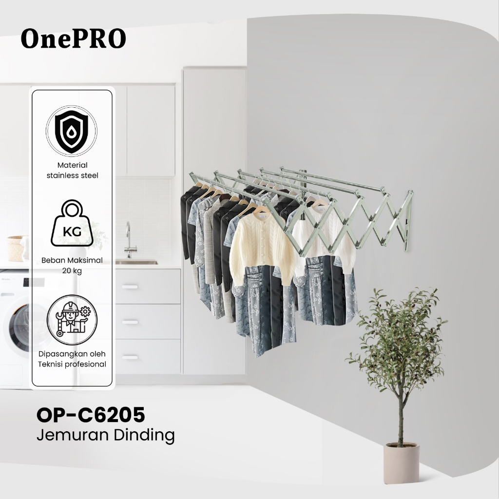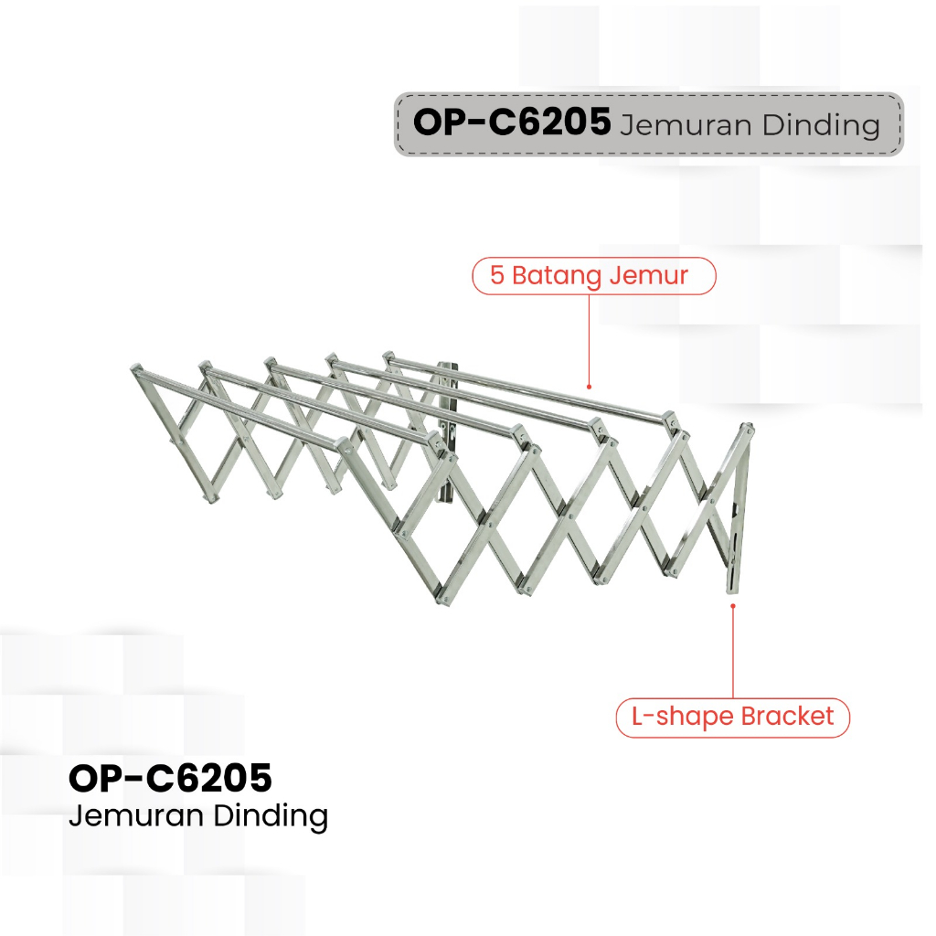 Jemuran Dinding OnePro 2m x 5 batang pipa OP-C6205