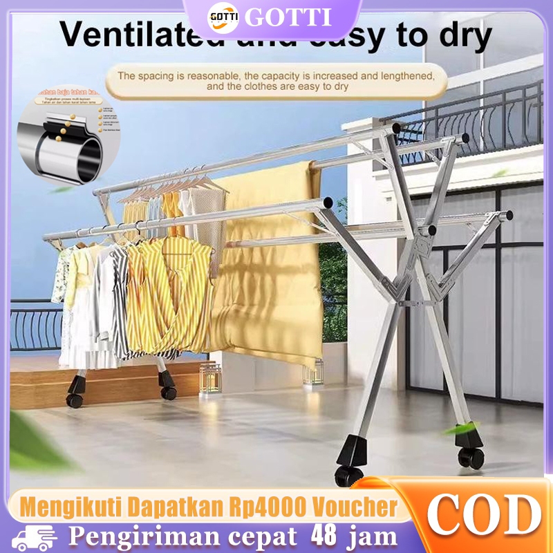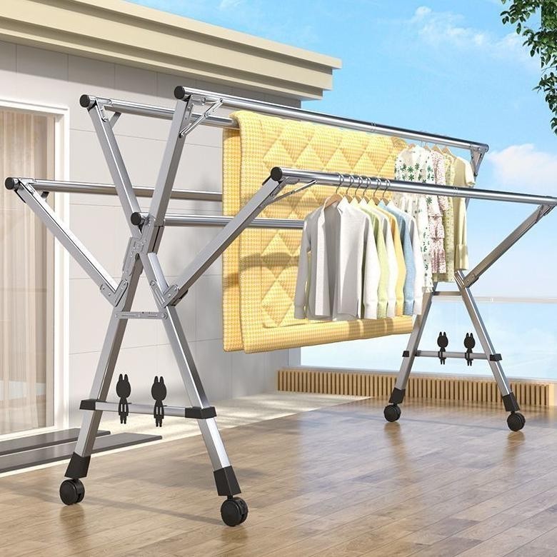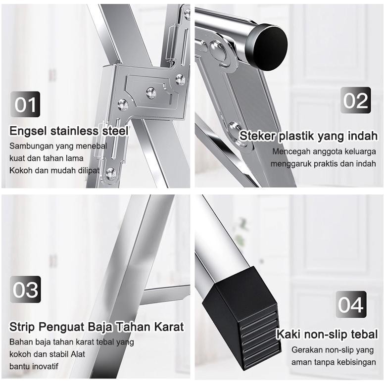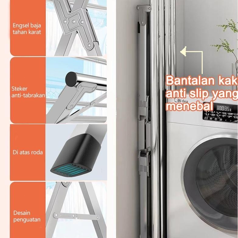 240cm 5 Tiang &Tanpa Instalasi Jemuran Baju Lipat Jemuran Stainless Steel Jemuran Pakaian Jemuran Hanger Jemuran Pakaian