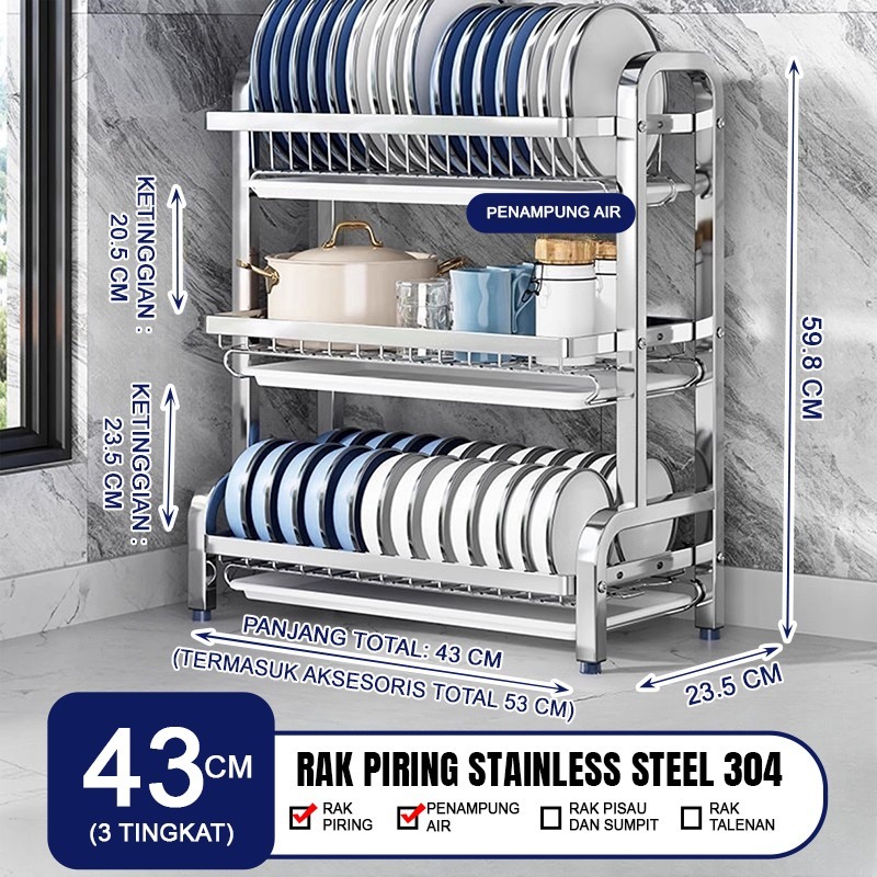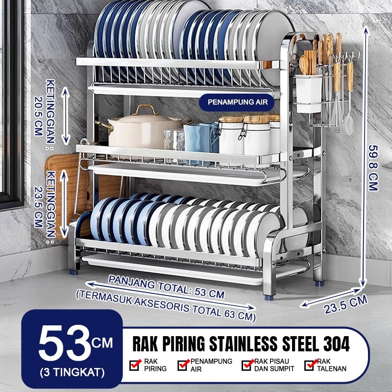 Rak Piring Stainless Steel Rak Dapur Multifungsi Berkualitas Modern Murah Tahan Lama Garansi 1 Tahun