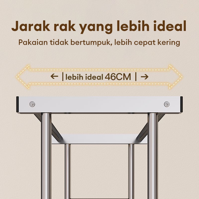 180cm Jemuran Baju Stainless steel 2 Tiang Jemuran Baju Anti Angin Jemuran dengan Roda
