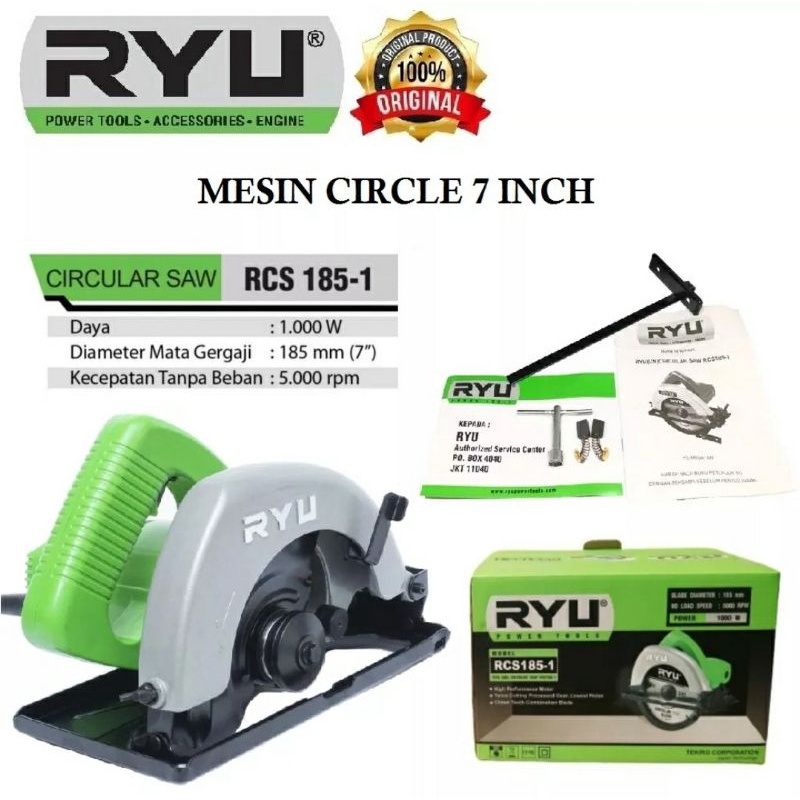RYU RCS 185-1 Circular Saw 7 inch Mesin Sirkel Gergaji Potong Kayu Circle FREE 1 Mata Blade Termurah