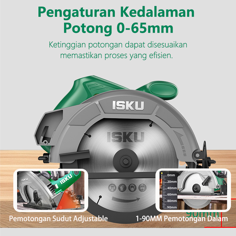 [Set Lima Perkakas Tukang Kayu] ISKU Gergaji Circular Saw 1000W+Planer Listrik 450W Mesin Serut Kayu+Mesin Gerinda Tanga