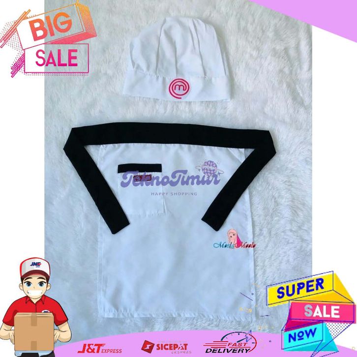Baju Profesi Chef Koki Set Celemek Anak Master Chef Junior/ Kostum Profesi Koki Cilik Anak