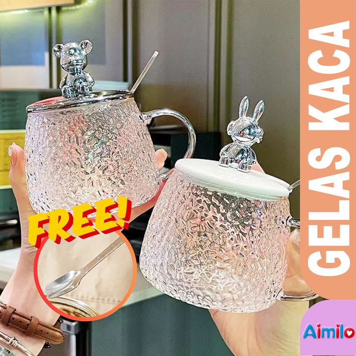 Gelas Kaca Glass Mug Aesthetic 450ml / Gelas Minum Kaca Simple Elegan Water Bottle Cup for Coffee and Tea / Gelas Kaca D